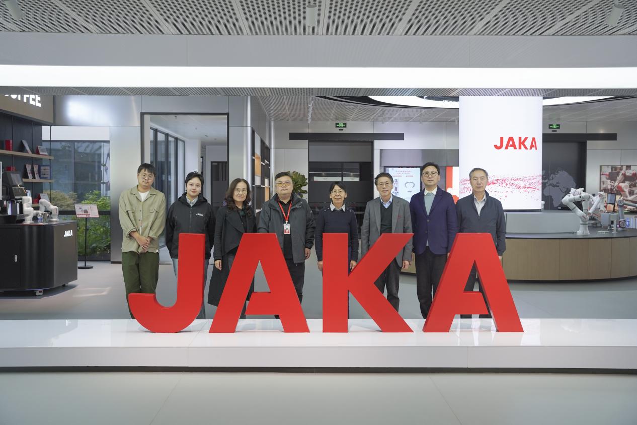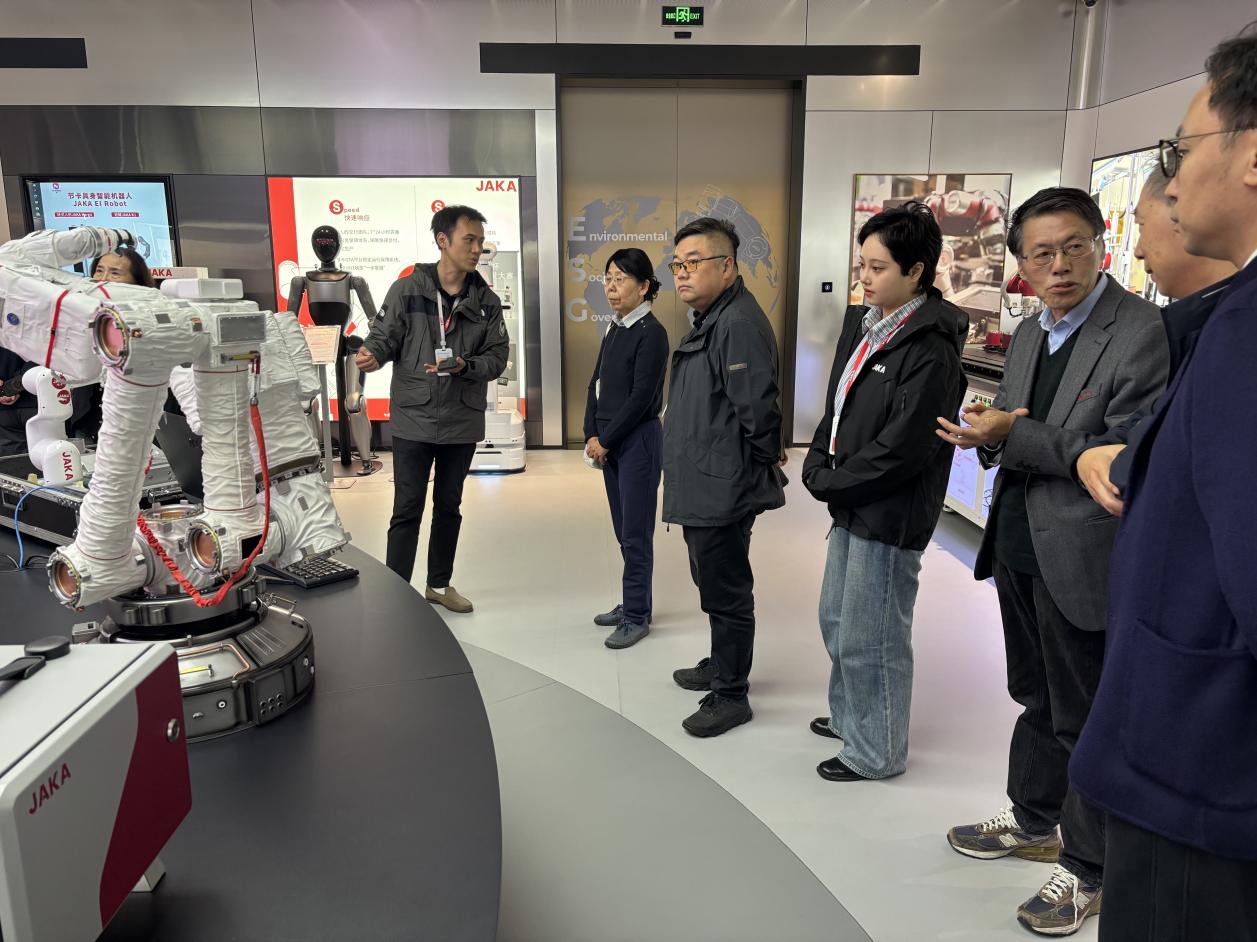 首先,在节卡机器人联合创始人言勇华和副总裁杨卓的陪同下,东海调研组参观了节卡机器人上海基地产品展厅,并听取了企业方对JAKA协作机器人研发、智能制造场景应用及教育生态构建等领域前沿成果的系统介绍;通过近距离观察中试车间的创新技术演示,调研组成员对节卡机器人在机器人领域的核心技术突破及产业化能力有了更直观的认识,为后续合作方向提供了实践参考。