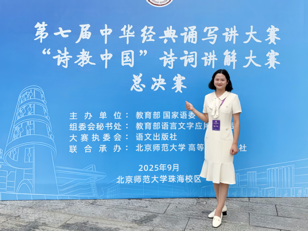 国赛一等奖作品指导老师王腼说,感谢学校搭建了一个展现语言魅力的平台让学生和老师能用声音传递文字的力量。朗诵不仅是技巧的展示,更是文化与情感的传承。荣誉是起点而非终点,我希望这次经历能点燃更多同学对朗读的热爱,让语言艺术成为每位学子成长的底色。