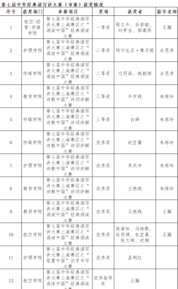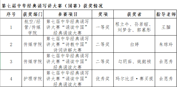 近日,中华经典诵写讲大赛组委会公布了第七届中华经典诵写讲大赛获奖名单。我校在“诵读中国”经典诵读赛项和“诗教中国”诗词讲解赛项中共获得1个一等奖、2个二等奖和1个优秀奖,取得东海学院历史最佳成绩。