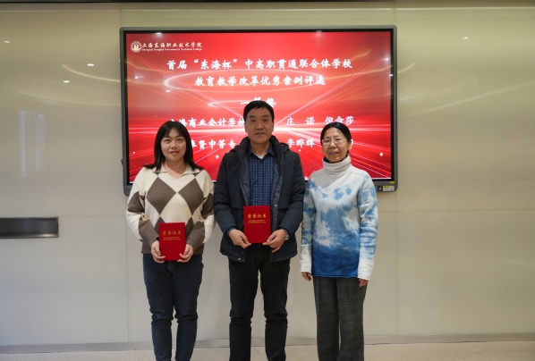 在人才培养情况通报环节,教务处处长张居阳作专题报告,从贯通专业布局优化、校企课程共建、学生技能竞赛、毕业生就业质量等方面通报了年度数据。随后,隆重举行了首届“东海杯”中高职贯通教育教学改革优秀案例评选颁奖仪式,校长贺瑛、副校长郁萍、校长助理张居阳分别为一等奖、二等奖、三等奖获奖团队代表颁奖。