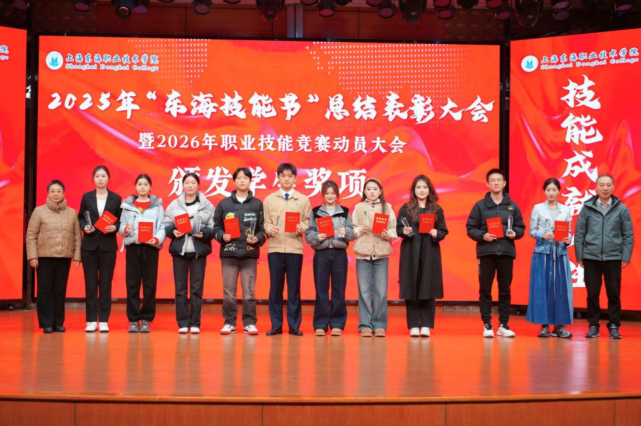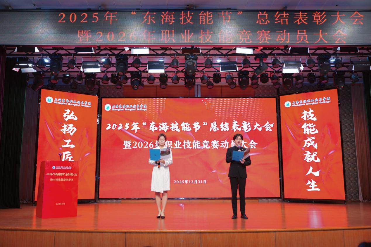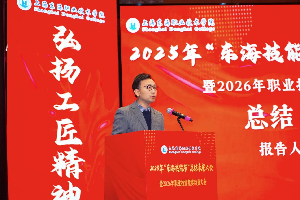 2025年12月31日,上海东海职业技术学院“2025年‘东海技能节’总结表彰大会暨2026年技能竞赛动员大会”在东海源报告厅隆重召开。校领导、全体中层干部、专业主任、竞赛指导教师、获奖师生及二级学院师生代表等400余人出席会议。大会以“弘扬工匠精神,技能成就人生”为主题,全面总结了2025年度学生技能竞赛成果与育人成效,并对表现突出的集体与个人予以表彰。