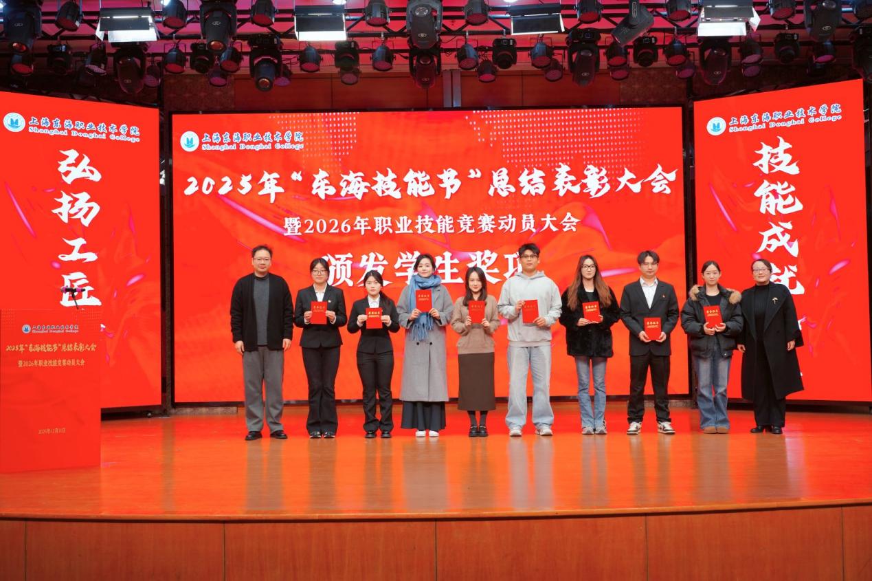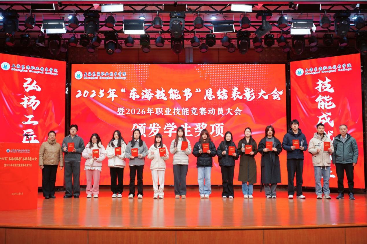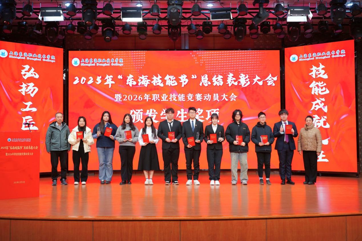 2025年12月31日,上海东海职业技术学院“2025年‘东海技能节’总结表彰大会暨2026年技能竞赛动员大会”在东海源报告厅隆重召开。校领导、全体中层干部、专业主任、竞赛指导教师、获奖师生及二级学院师生代表等400余人出席会议。大会以“弘扬工匠精神,技能成就人生”为主题,全面总结了2025年度学生技能竞赛成果与育人成效,并对表现突出的集体与个人予以表彰。