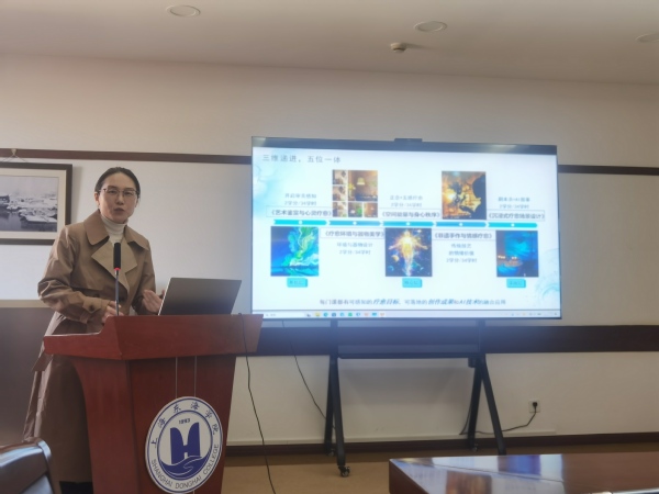 刘伊丹老师对艺术疗愈微专业建设情况做了介绍。目前疗愈空间工作室已逐步建立,与兄弟院校、企业建立合作关系,与医院、社区联动正在推进中。